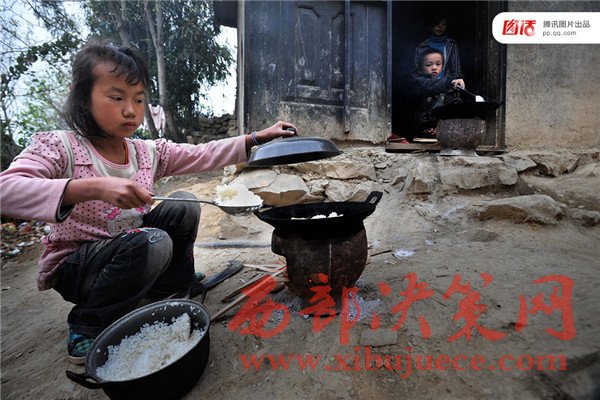 圖為2011年3月31日,在貴州羅甸縣班仁鄉(xiāng),學(xué)生在每學(xué)期開(kāi)學(xué)的時(shí)候,除了背書包去上學(xué)以外,還要帶著爐灶和鍋碗瓢盆等。包括一年級(jí)學(xué)生在內(nèi),在學(xué)校他們每天必須自己生火做飯。