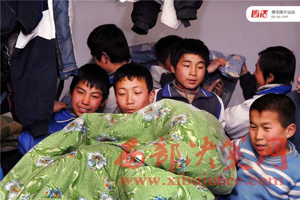 圖為2007年1月9日,固原市原州區(qū)楊郎中學(xué),由于床鋪擁擠,學(xué)生只得4人合蓋一床棉被。
