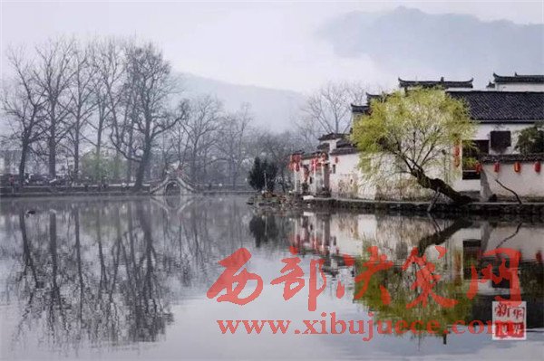 安徽黟縣宏村風(fēng)景區(qū)南湖景點的早春春色
