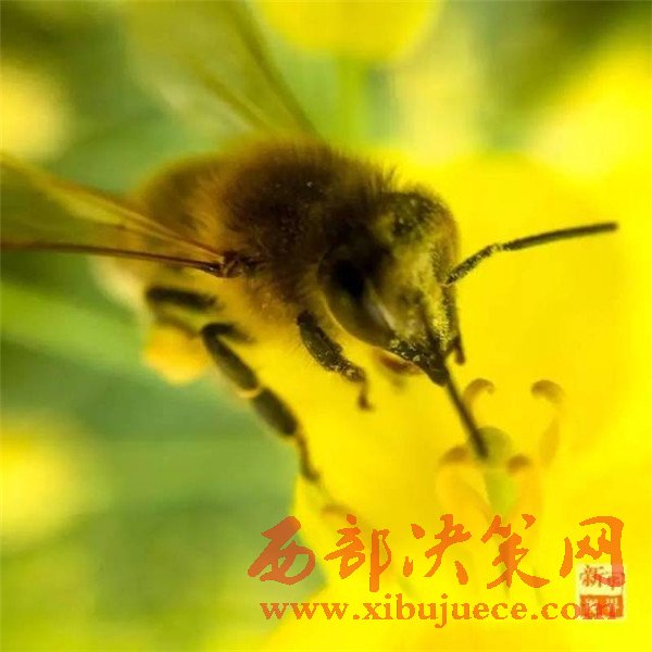 一只蜜蜂在重慶長壽區(qū)鄰封鎮(zhèn)的油菜花海采蜜。