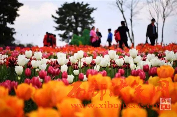 游客在重慶市長壽湖景區(qū)觀賞盛開的郁金香。