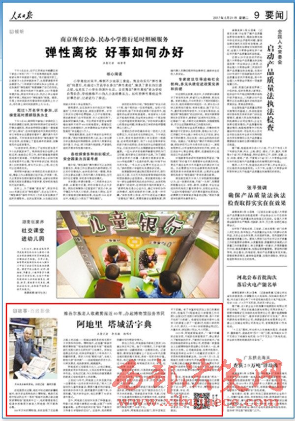2015年,阿地里面臨退休。“一輩子收藏的這些東西,不能放在家里埋沒了,得讓更多人了解塔城的歷史,了解我們生活的地方。”他找到塔城西部實業(yè)有限公司,把想建一家愛國主義主題博物館的想法跟公司負責人一說,得到大力支持。公司提供場地、負責沖洗照片,阿地里則將近40年個人收藏的歷史照片、文史資料和剪報奉獻出來。2015年7月1日,在塔城巴克圖口岸對外開放30周年紀念日時,“絲綢之路邊境貿(mào)易博物館”正式免費對外開放。不到兩年時間,已經(jīng)有3萬多人次前來參觀過,他的科普圖書館也有了100多名固定的讀者。