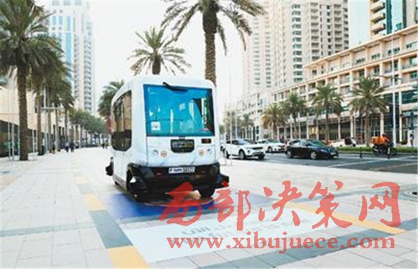 迪拜在市中心試運營的無人駕駛客車。