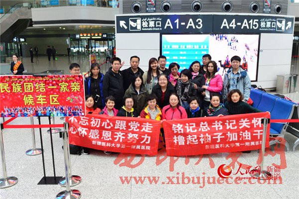 3月25日上午,在新疆最大的綜合交通樞紐--烏魯木齊火車站,由烏魯木齊開出的首趟T9526/7次“民族團(tuán)結(jié)一家親號”特快旅客列車,滿載到和田地區(qū)看望結(jié)對認(rèn)親戶的自治區(qū)教育廳、公安廳、衛(wèi)計委的545名干部和車內(nèi)各族旅客共計近900人啟程發(fā)車。
