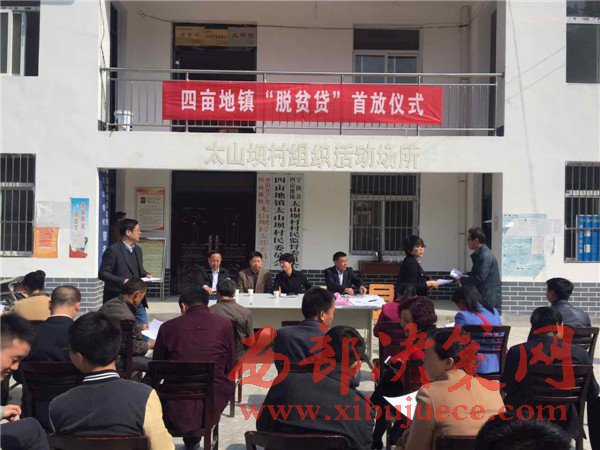 圖為筒車灣支行到海棠園村村委會集中為貧困群眾辦理脫貧貸款