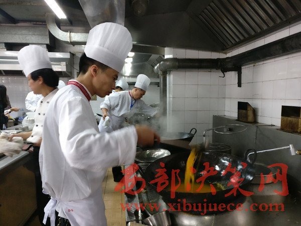這次比賽的菜品以家禽類菜肴和各式點心為主。譬如,上海師范大學(xué)廚師孫榮根以豆腐、鵝肝為原料,輔以松仁、香菜,現(xiàn)場制作出一碗碗“白玉鵝肝粒”。