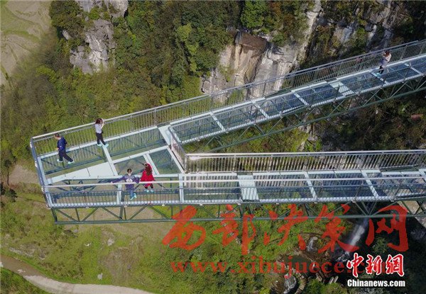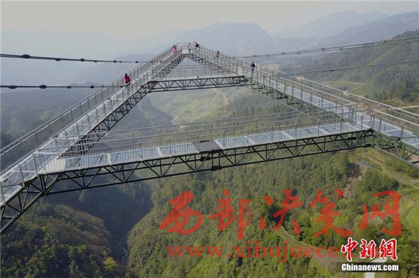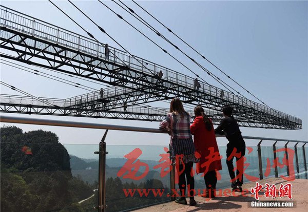 4月6日,重慶一景區(qū)內(nèi)“天空懸廊”吸引眾多市民前往體驗(yàn)。懸廊成“A”字形,橋面鋪設(shè)全透明玻璃,由于懸空于近300米高的懸崖峭壁之上,又沿懸崖向外延伸在80米的空中,因此取名為“天空懸廊”。相比美國科羅拉多觀景廊橋向外懸挑21米,天空懸廊向外懸挑80米更為驚險(xiǎn)刺激。目前,該項(xiàng)目正在申請(qǐng)吉尼斯世界紀(jì)錄。