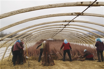 圖為樂都區(qū)碾伯鎮(zhèn)下寨村大棚內(nèi)栽植的楊樹苗銷售火爆。