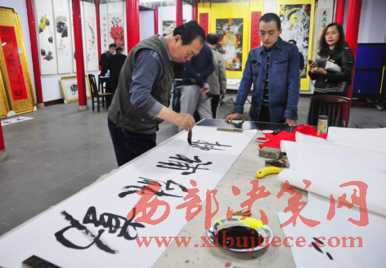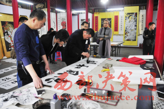 西部決策網(wǎng)-西部大開發(fā)訊(胡玉敏 通訊員 李海其 胡玉軍)4月13日下午,河北省邢臺市橋西區(qū)知聯(lián)會、邢臺市橋西區(qū)政協(xié)第三委員小組,在紫金公園聚義廳開展了書法文化交流活動?;顒犹匮沂兄麜嫾椰F(xiàn)場揮毫潑墨,切磋書畫技藝,創(chuàng)作作品20余幅。民盟市委副主委付曉婭,橋西區(qū)政協(xié)主席張建波、區(qū)政協(xié)副主席趙振群、王之良等領導應邀參加。
