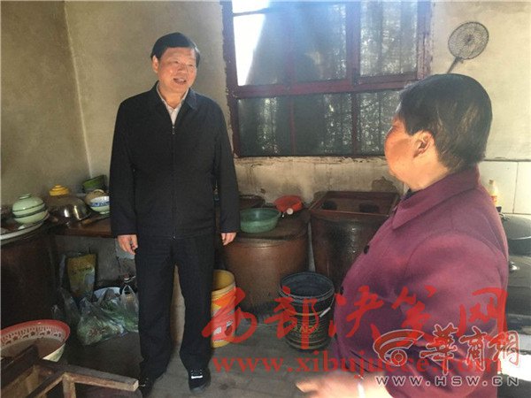 婁勤儉詳細(xì)了解了老人家庭成員、收入來源等,詢問了干部定點幫扶情況。隨后,他走進(jìn)屋里察看生活情況,在土坑邊彎下腰了解如何取暖,在廚房詢問吃水等情況。走出廚房后,他感嘆,“條件確實不太好,我們的工作還得加把勁啊!”