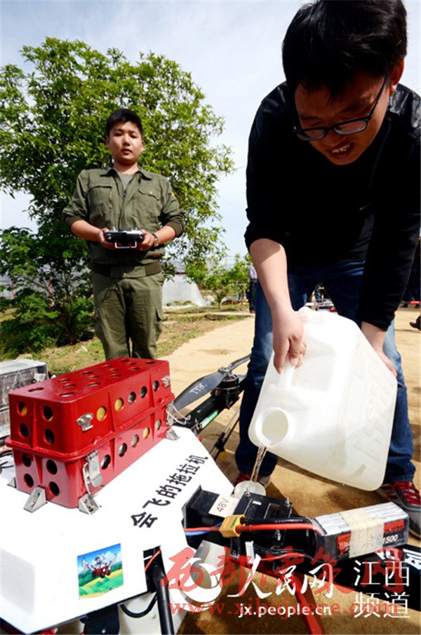 “飛手”正在給無人機搭載的藥箱內(nèi)灌裝農(nóng)藥