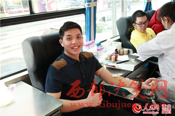 4月22日上午,在重慶市沙坪壩區(qū)三峽廣場(chǎng),來自在華印尼留學(xué)生協(xié)會(huì)重慶分會(huì)的52名留學(xué)生在中國人民解放軍重慶血站西南醫(yī)院流動(dòng)獻(xiàn)血車進(jìn)行了獻(xiàn)血。據(jù)悉,在重慶各大學(xué)的印尼留學(xué)生約有130人,主要就讀于重慶大學(xué)、重慶醫(yī)科大學(xué)、西南大學(xué)、重慶郵電大學(xué)、四川外國語學(xué)院、重慶工商大學(xué)等,這是在華印尼留學(xué)生協(xié)會(huì)重慶分會(huì)留學(xué)生第二次集中獻(xiàn)血活動(dòng)。