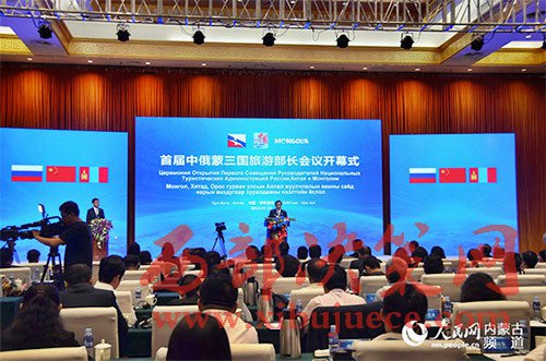 首屆中俄蒙三國(guó)旅游部長(zhǎng)會(huì)議現(xiàn)場(chǎng)。