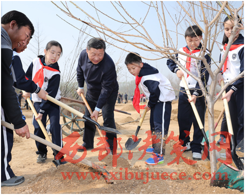 揮鍬鏟土填入樹坑,培實(shí)新土堆起圍堰,陽春三月里,習(xí)近平總書記在北京市朝陽區(qū)將臺鄉(xiāng)接連種下了一顆顆樹苗……