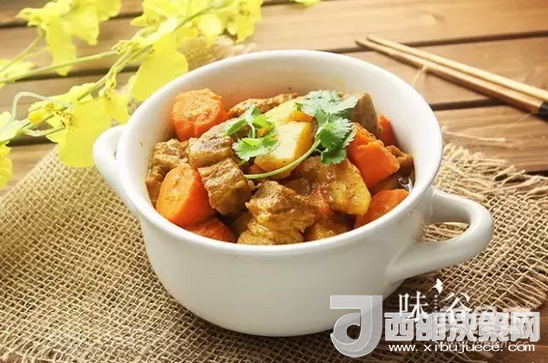 10.倒入咖喱粉,繼續(xù)燜煮20分鐘左右。