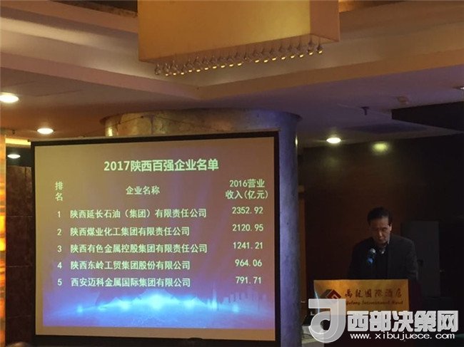 “2017陜西百強企業(yè)”評定是按照國際通行的方式,參照中國500強企業(yè)排序方法,堅持公平公正公開等原則,依據(jù)企業(yè)2016年度營業(yè)收入,在企業(yè)自愿申報為主的基礎(chǔ)上進行排序,并經(jīng)“陜西省百強企業(yè)審定委員會”審定后產(chǎn)生。