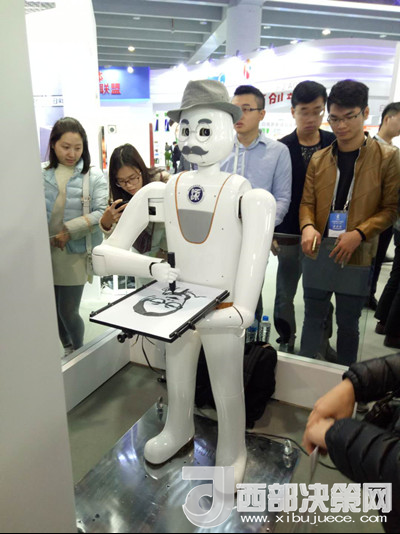 海外人才科技成果展區(qū)展出的賽大千智能畫像機器人
