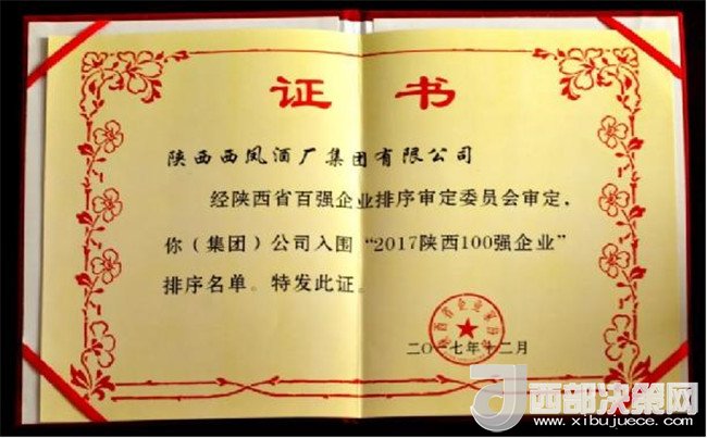 “陜西百強企業(yè)”榮譽的獲得,是西鳳集團堅持“酒業(yè)為主,多業(yè)經(jīng)營”的發(fā)展戰(zhàn)略,科學應對行業(yè)調整,以中國西鳳酒城建設為信托,積極實施“一體兩翼”產(chǎn)業(yè)布局,奮力追趕超越,大力推進資本社會化,不斷提升西鳳品牌影響力的結果。西鳳集團將高舉鳳香型旗幟,以內涵式發(fā)展和外延式擴張相結合的方式,大力提升企業(yè)核心競爭力,努力把西鳳集團建成市場競爭力強、經(jīng)濟效益好的大型企業(yè)集團。