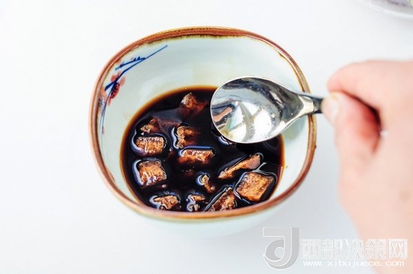 3、紅糖調(diào)進(jìn)陳醋攪拌融化成酸甜汁。