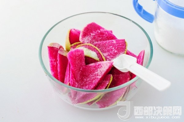 食材:紅芯蘿卜、紅糖、陳醋、精鹽。