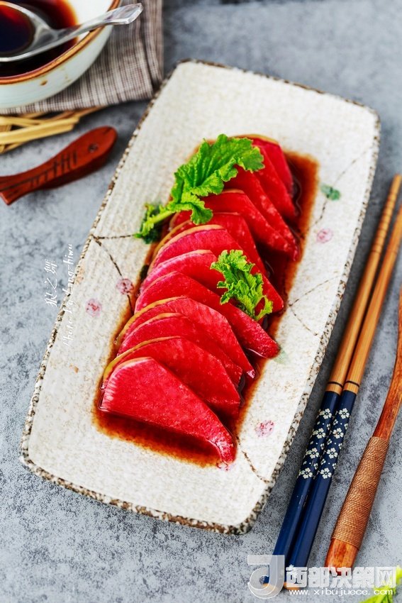 紅心蘿卜如果直接生吃過于單調(diào)了,用一點(diǎn)紅糖,少許陳醋調(diào)成汁把蘿卜浸泡了吃,口感層次豐富,營養(yǎng)和顏值也提升了一檔。紅糖溫中補(bǔ)血還可中和陳醋的酸澀,這樣調(diào)成的酸甜汁適合冬天做涼拌菜使用。