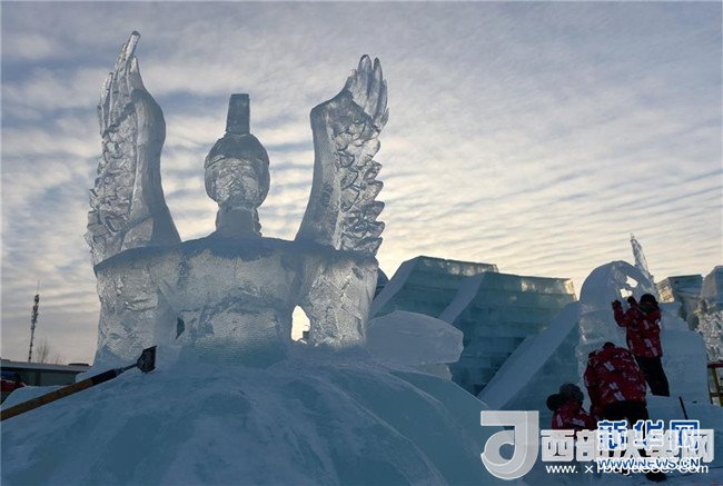 1月3日,在哈爾濱冰雪大世界園區(qū),冰雕選手在進行創(chuàng)作。當日,在哈爾濱冰雪大世界園區(qū)內(nèi)舉行的國際組合冰冰雕比賽進入第四天。經(jīng)過來自世界各地的冰雕選手悉心雕琢,一塊塊冰出落成精美的藝術(shù)作品,仿佛晶瑩剔透的出“冰”芙蓉。(記者 王建威 攝)