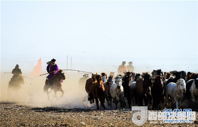 1月16日,在內(nèi)蒙古錫林浩特鳳凰馬場,當(dāng)?shù)啬撩癖硌萏遵R。