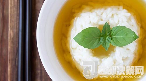 5、將泡制好的煎茶湯倒入飯碗,至米飯2/3即可食用。