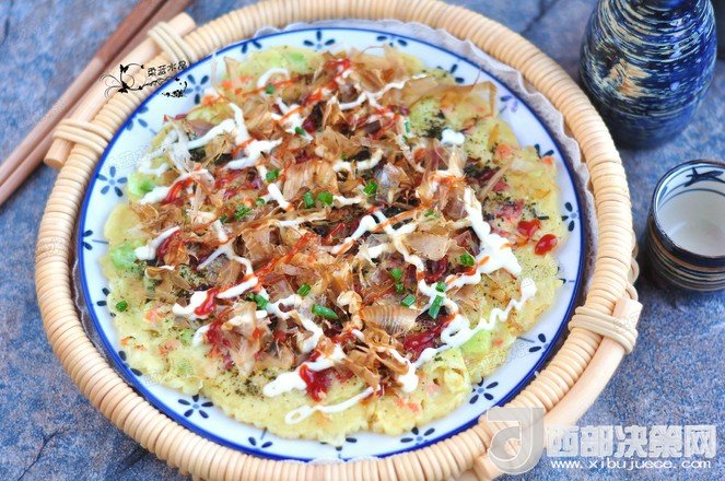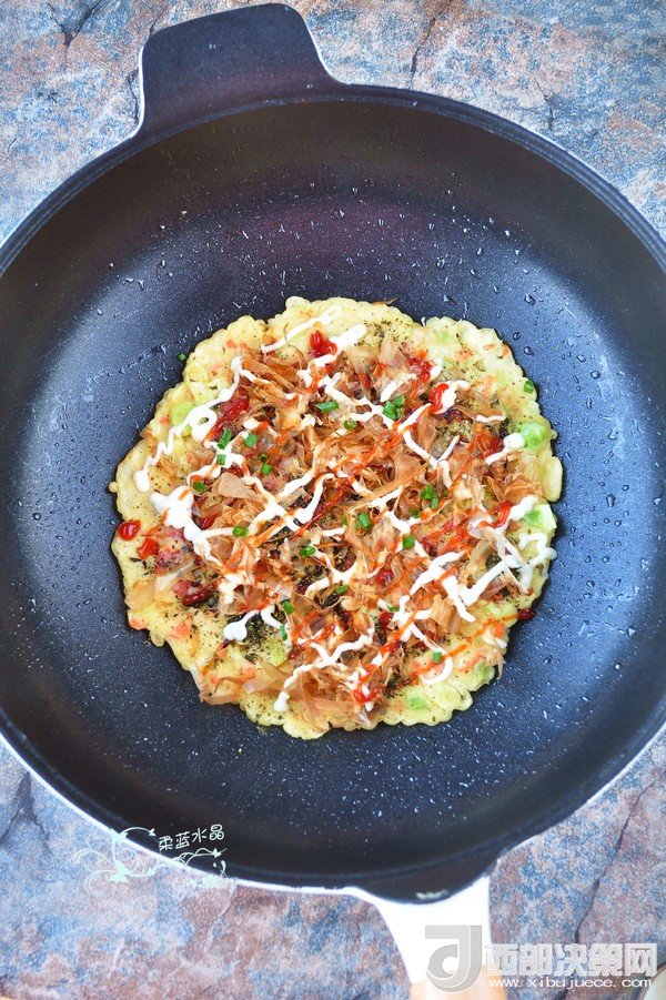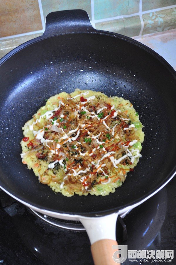 “大阪燒是一種日式蔬菜煎餅,有些地區(qū)根據(jù)日文漢字的寫(xiě)法,也叫做“御好燒”,為日本關(guān)西的一種民間美食,也是大阪飲食文化的代表。由于外觀的關(guān)系,也有人稱大阪燒為“日本式比薩餅”,可以說(shuō)放上去的食材,并沒(méi)有特殊規(guī)定,一般是自己想吃什么就放什么。吃膩了中式的雞蛋薄餅,換個(gè)口味也別俱一格。做這個(gè)頂重要的是,一定要用不粘鍋,不然想翻面的時(shí)候,底部巴鍋底不動(dòng),而且還容易上面的沒(méi)熟,下面的已經(jīng)糊了。”