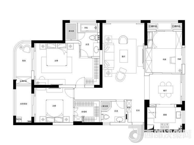主臥非常的大,就是客廳小了點(diǎn)。面積空間沒有充分的利用起來,做了3個(gè)房間加1個(gè)衣帽間,房間夠住了。房子的戶型很房子,除了衣帽間沒有采光,其它地方都是有帶窗戶采光的。