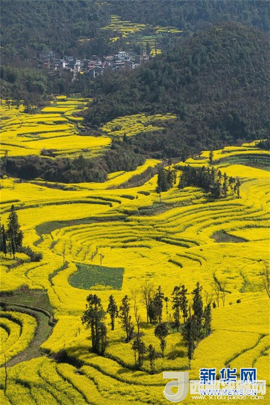 這是在云南省羅平縣螺絲田景區(qū)拍攝的油菜花(2月28日攝)。新華社記者 胡超 攝