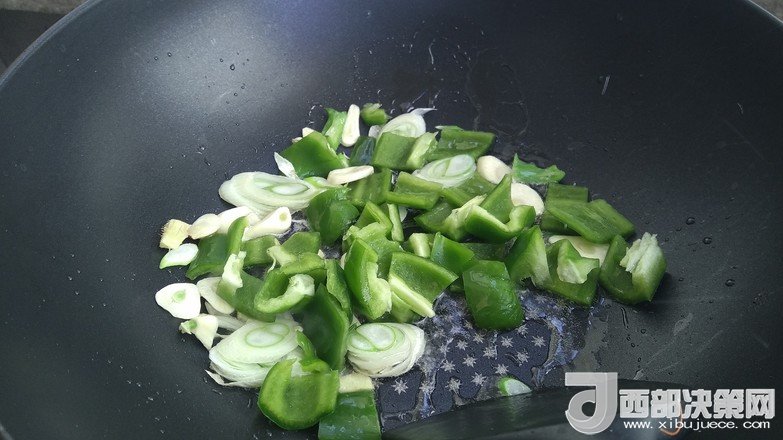 7.加入青椒塊翻炒