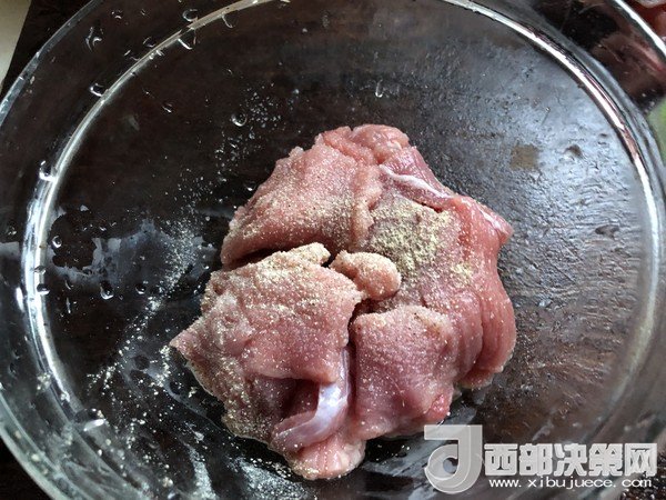 2.放入碗里加點料酒、鹽和白胡椒粉腌制15分鐘
