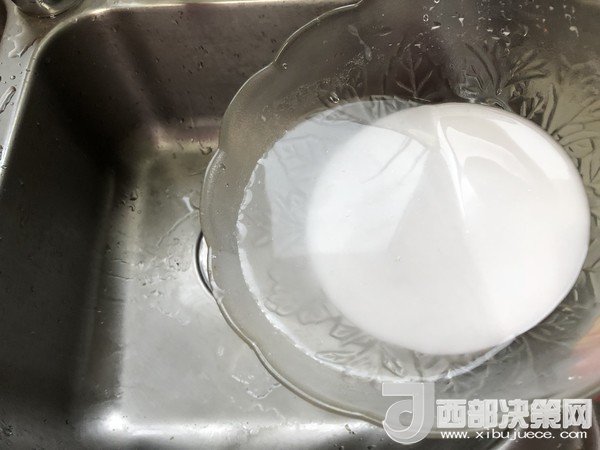 4.30分鐘后,土豆淀粉沉淀后把表面的水倒掉