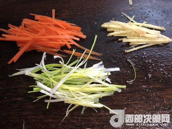 5.準(zhǔn)備好胡蘿卜絲、蔥絲和姜絲
