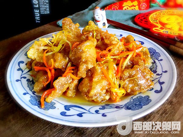 鍋包肉是一道東北風(fēng)味菜,滿族美食。 就是將豬里脊肉切片腌入味,裹上炸漿下鍋炸至金黃色撈起,再下鍋拌炒勾芡即成。成菜色澤金黃,口味酸甜。從小到大,我家女兒對酸甜味的菜肴那是情有獨鐘!