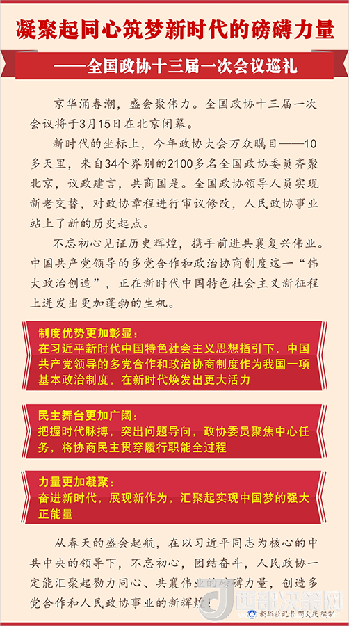 原標(biāo)題:凝聚起同心筑夢(mèng)新時(shí)代的磅礴力量——全國(guó)政協(xié)十三屆一次會(huì)議巡禮