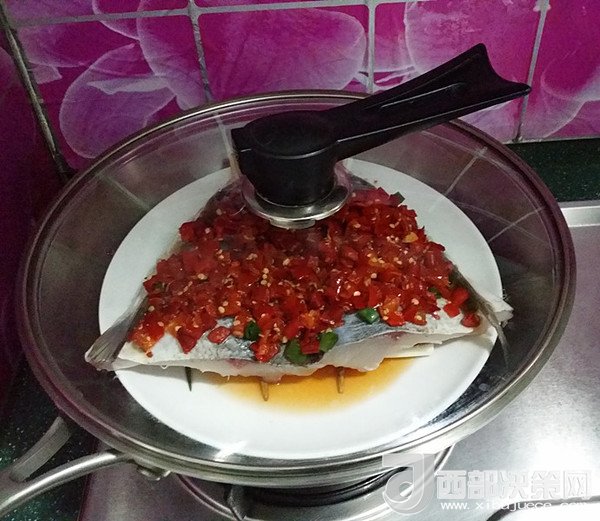 8.加蓋開(kāi)大火,根據(jù)魚(yú)頭大小約蒸8~10分鐘左右