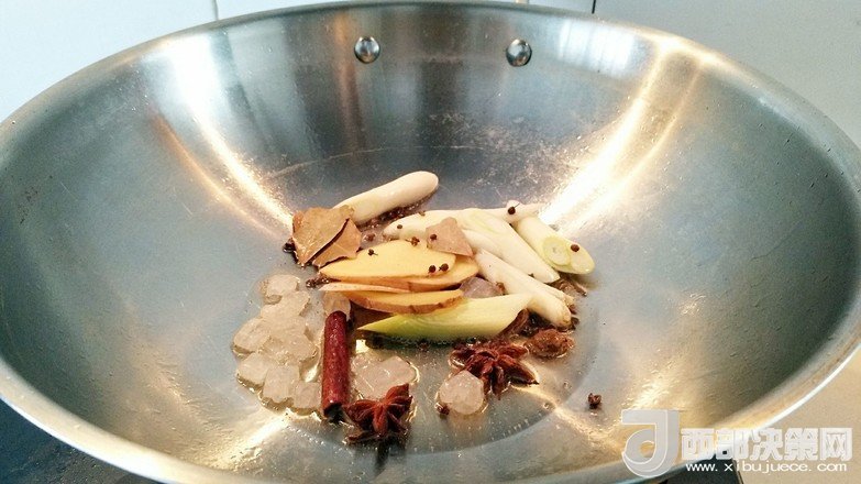 輔料:花椒粒 適量 草果 兩個 玉米油 半勺 八角 兩個 生姜 一塊 大蔥 一根 生抽 一勺 老抽 幾滴 蠔油 1湯勺 鹽 三克 冰糖 20克