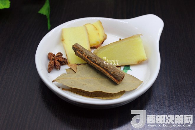 2.煮味料,桂皮、生姜、香葉、八角等分別準(zhǔn)備洗凈;