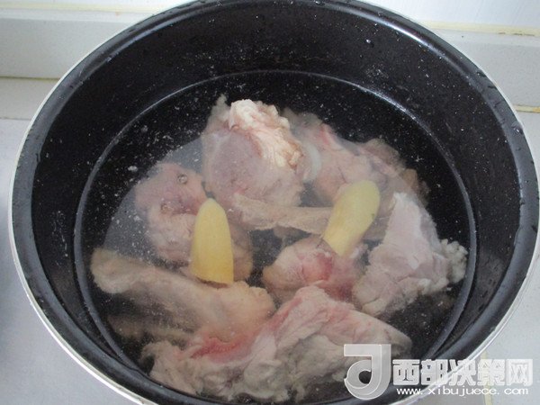 4.再放入電壓鍋里注入清水加入生姜片和黃酒