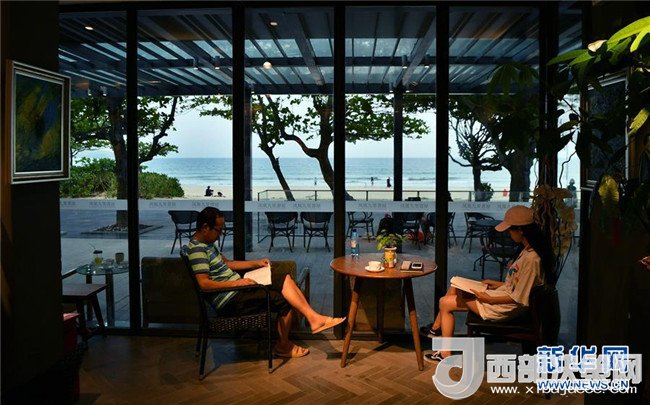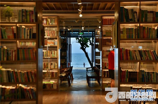在海南省萬寧市石梅灣,有一間面朝大海,被樹林環(huán)繞的書屋,吸引了許多游客在這里讀書。