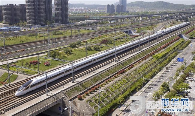 4月9日,一列“復(fù)興號”動車組列車行駛在京滬高鐵南京市境內(nèi)。國家統(tǒng)計局4月17日發(fā)布數(shù)據(jù),初步核算,一季度國內(nèi)生產(chǎn)總值198783億元,按可比價格計算,同比增長6.8%。 新華社發(fā)(蘇陽 攝)