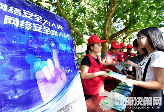 河北省廊坊市安次區(qū)網(wǎng)信辦工作人員和志愿者向?qū)W生們發(fā)放網(wǎng)絡(luò)安全宣傳折頁,倡導(dǎo)廣大師生提高網(wǎng)絡(luò)安全意識(shí),共同維護(hù)網(wǎng)絡(luò)社會(huì)秩序(2017年9月19日攝)。新華社記者 王曉 攝