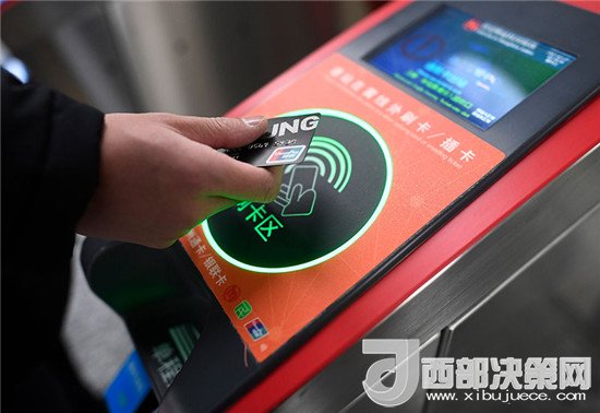 乘客在杭州地鐵豐潭路站體驗(yàn)使用帶有閃付功能的銀聯(lián)IC卡過閘乘車(2017年12月27日攝)。新華社記者 黃宗治 攝