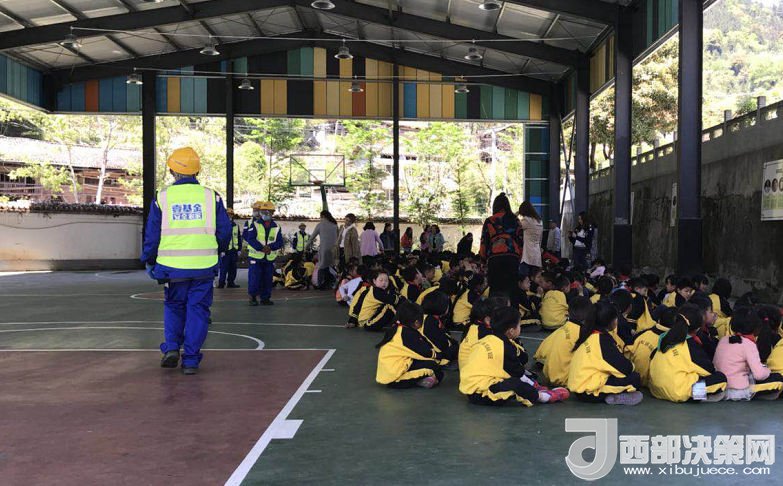 隨著一聲警報長鳴,雅安市蘆山縣雙石鎮(zhèn)中心小學(xué)的200余名學(xué)生在老師的帶領(lǐng)下,迅速、有序的從教學(xué)樓跑到操場,雙手抱頭蹲在操場的臨時安置區(qū)。校長楊成虎統(tǒng)計完人數(shù)后,立刻安排所有師生趕往校園深處的地震避難場。