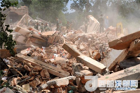 汶川地震時(shí),木魚(yú)中學(xué)成為一片廢墟,學(xué)生傷亡嚴(yán)重(2008年5月14日攝)。