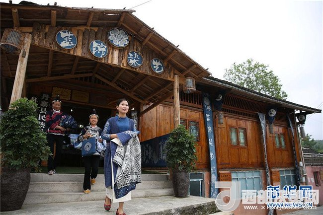 5月2日,在貴州省丹寨縣,張義蘋(前)與員工把新生產(chǎn)的蠟染產(chǎn)品送往銷售店。
