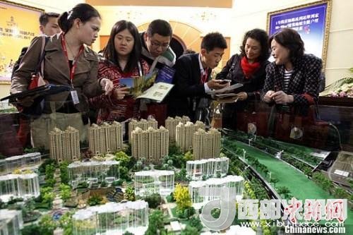 資料圖:購(gòu)房人在樓盤看沙盤并咨詢售樓工作人員。中新社發(fā) 湯彥俊 攝