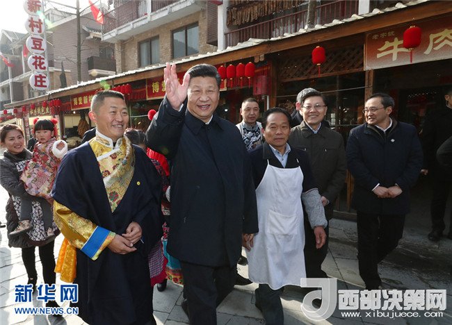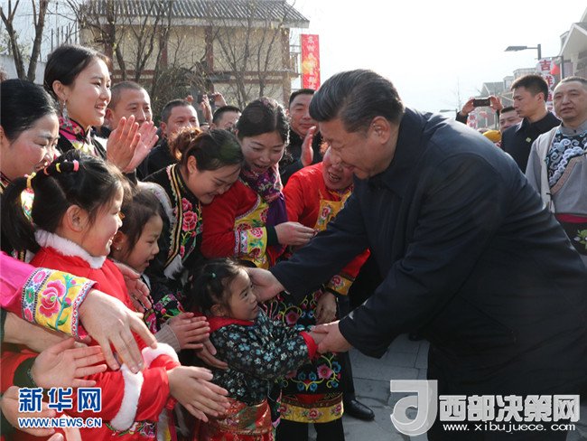 2018年2月12日上午,習近平在阿壩藏族羌族自治州汶川縣映秀鎮(zhèn)看望慰問群眾。 新華社記者 鞠鵬 攝